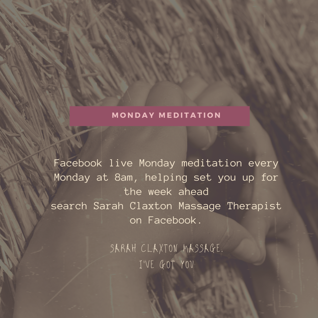 Join me every Monday morning at 8am as I lead a short guided meditation live from my Facebook page. This practice is a simple practice with no experience of meditation necessary.